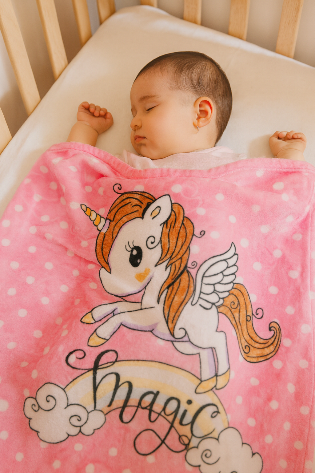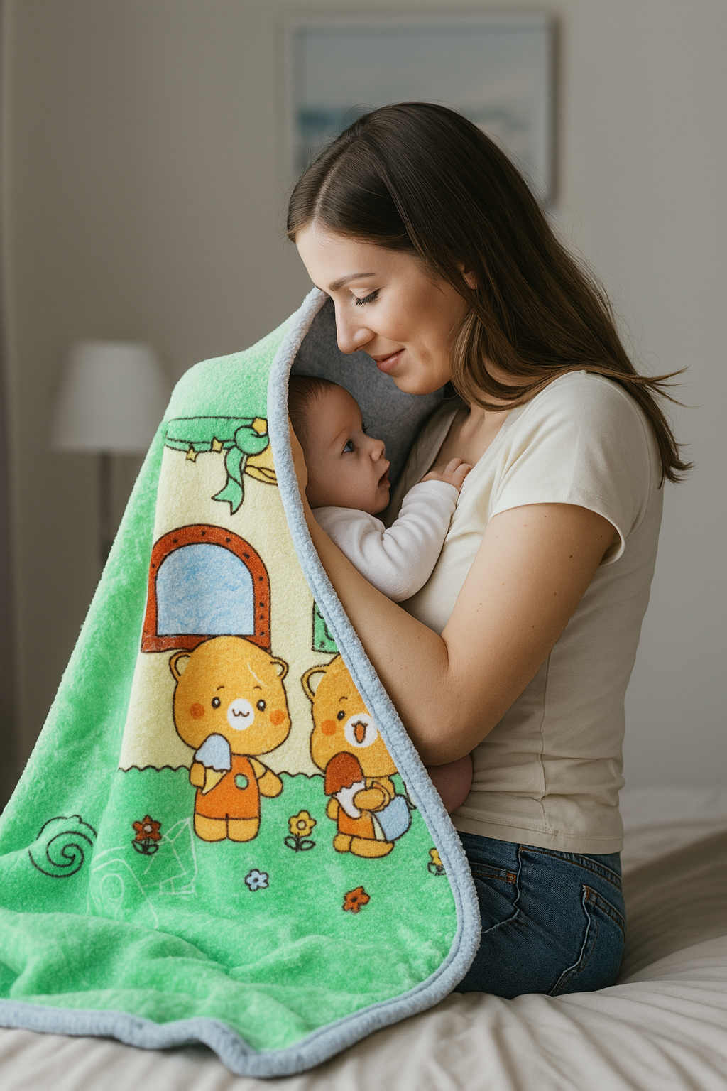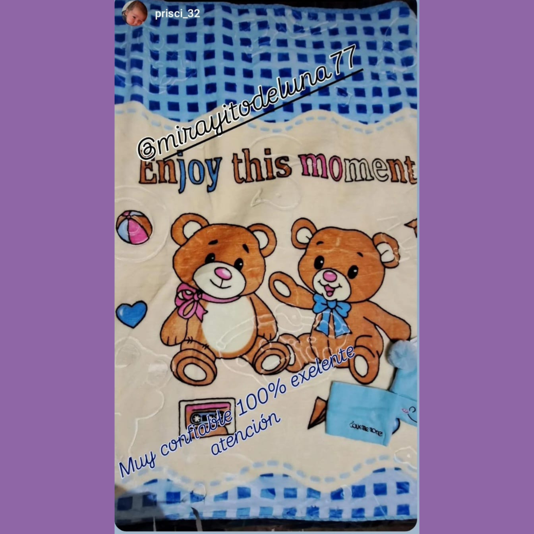 Nuestras frazadas están confeccionadas en tela afranelada, suave y abrigadora, ideal para mantener al bebé cómodo en todo momento.